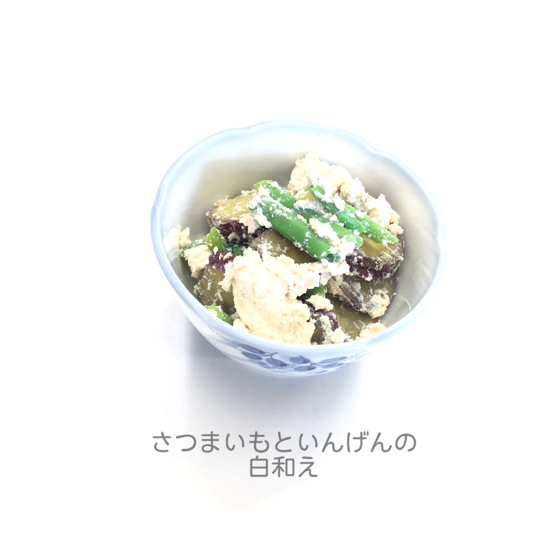 蒸し煮したさつまいもといんげんを豆腐の衣で和えました。